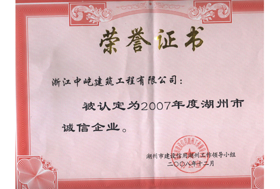 2007年度湖州诚信企业